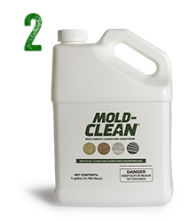 Once the drywall has been removed, apply ready-to-use Mold-Clean to wood studs to clean and condition wood. Mold-Clean is perfect for removing the ugly stains caused by water damage on all building materials. It contains special wetting agents for deep penetration into wood pores for thorough stain removal, minimizing or even eliminating scrubbing.